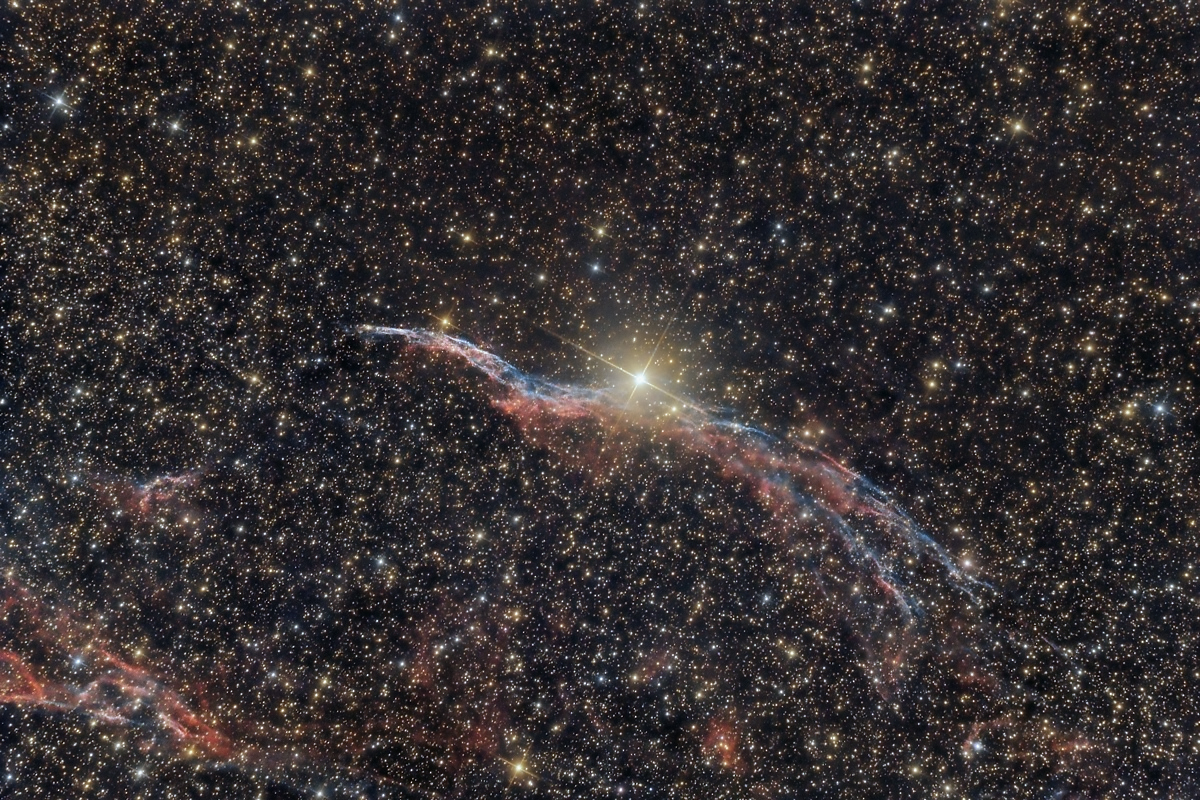 in den letzten Tagen hatte ich mich an einigen Filamenten des Cirrus-Nebels versucht. Gestern konnte ich etwa 1,5h Belichtungszeit von NGC 6960 ("Sturmvogel") sammeln: