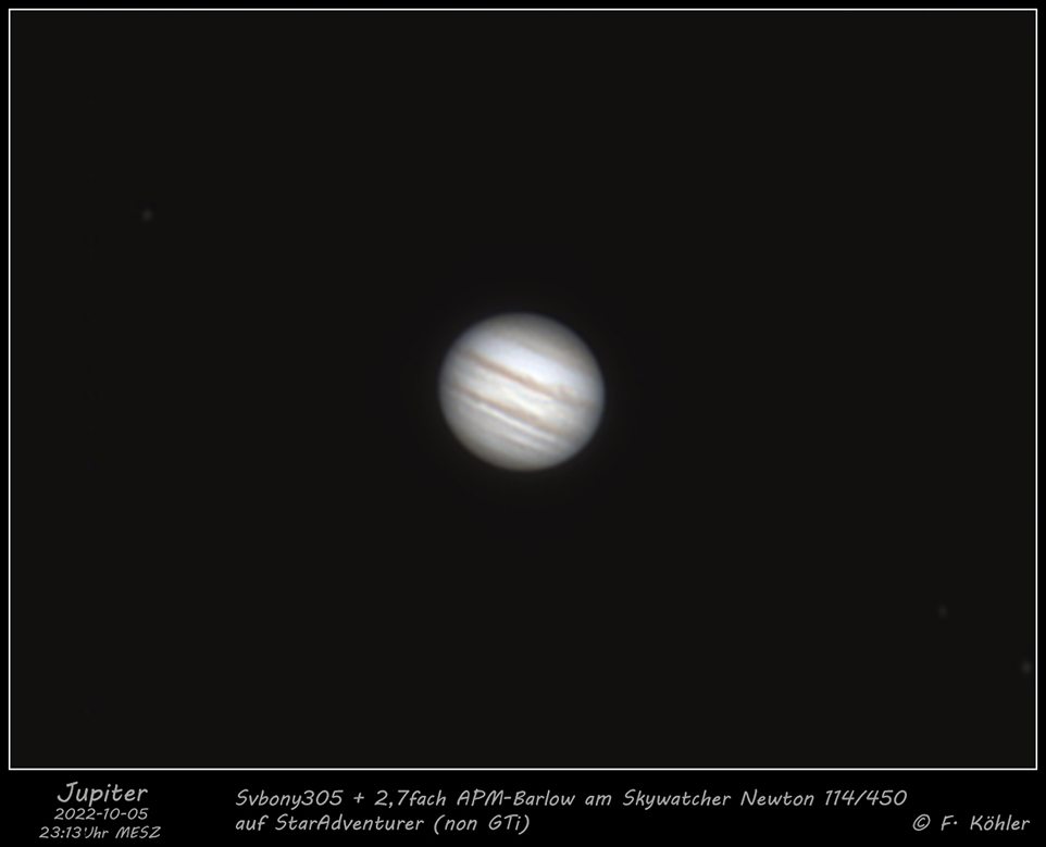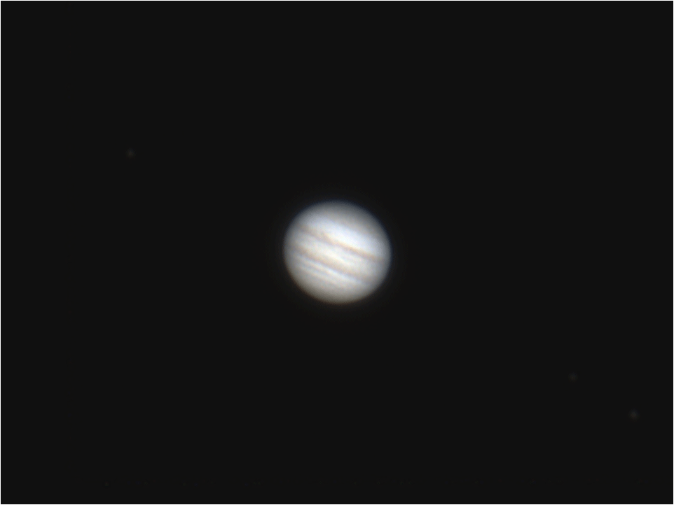 Nun geht ja mit der Brennweite des kleinen 114/450er nicht viel, aber trotzdem hab ich mal Jupiter aufs Korn genommen.