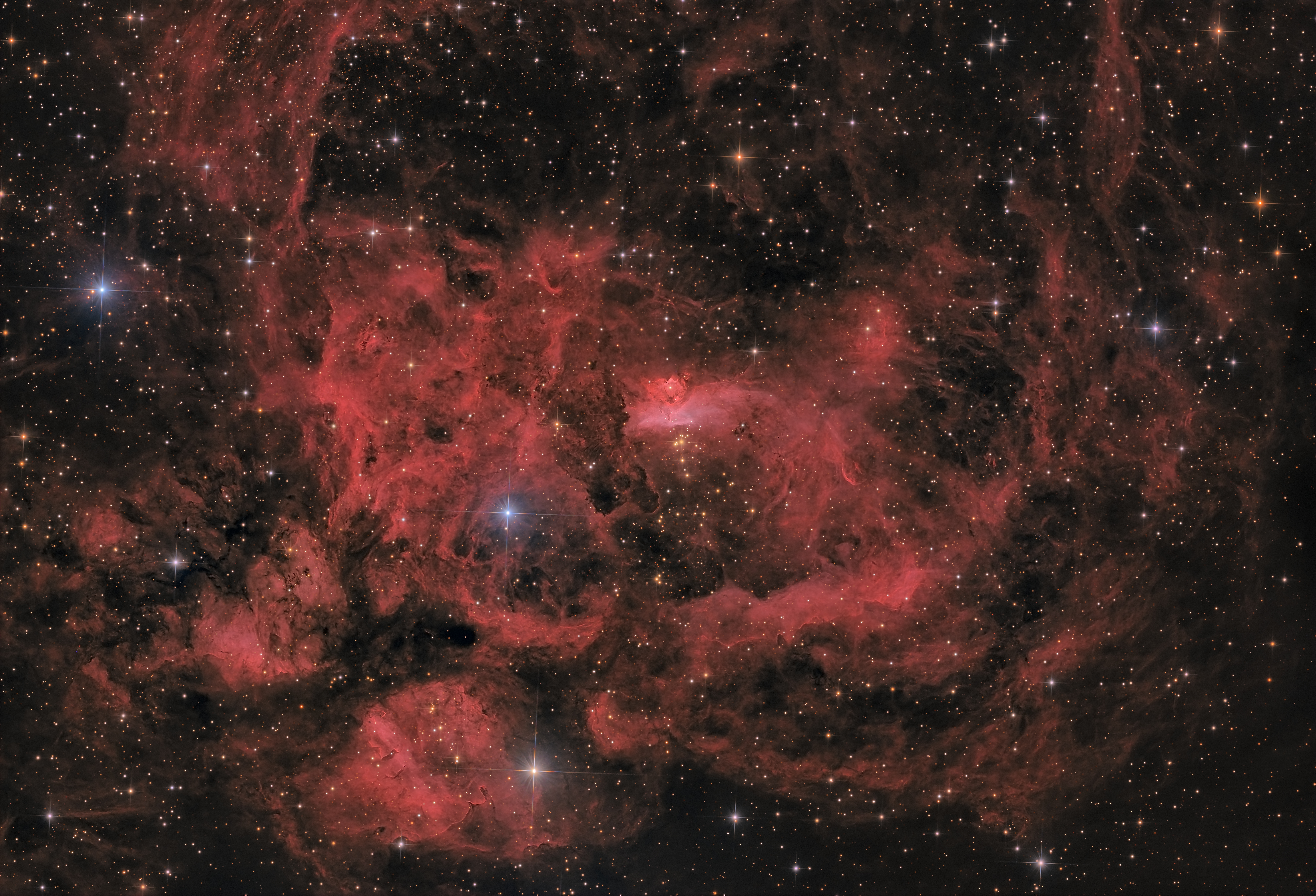 Ich bin selbst auf der Suche nach schönen Objekten im Skorpion über NGC6334, dem Katzenpfotennebel gestolpert. Der liegt ja ganz in der Nähe von NGC6357.