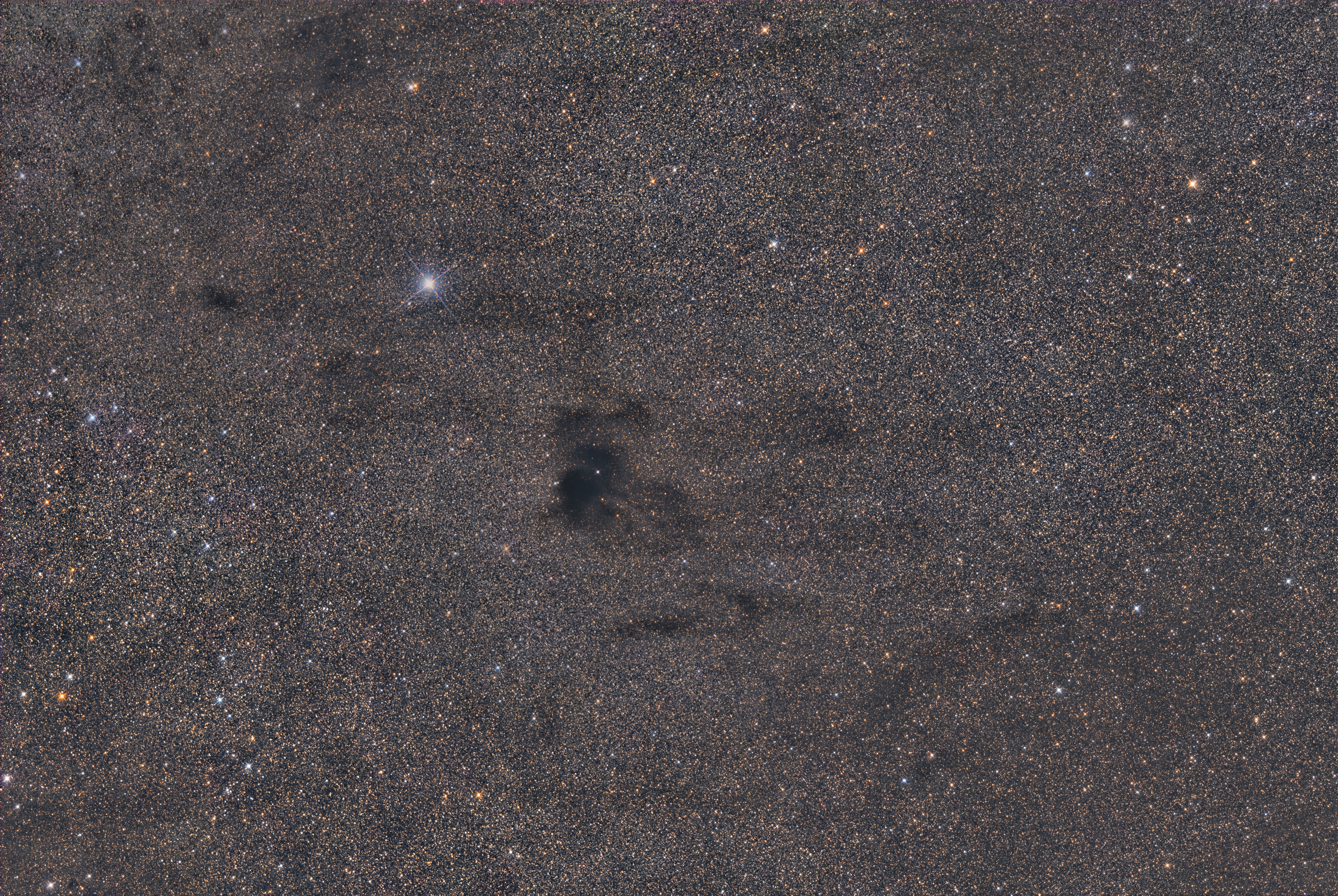 Und hier stechen die Dunkelnebel, insofern sie vor den hellen Sternwolken der Milchstraße stehen, durchaus heraus.