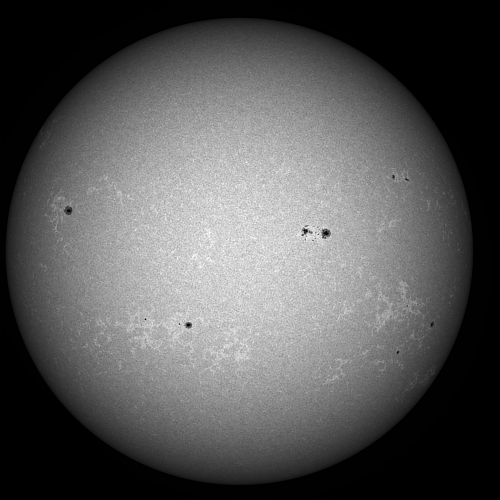 Ich hätte nicht gedacht daß ich heute überhaupt ein Sonnenvideo machen könnte aber das Teleskop war aufgebaut weil ich herumgebastelt habe und dann brach die Sonne durch die Wolken. Immer noch sehr verschleiert, aber mit Weißlicht hatte ich kurz Glück.