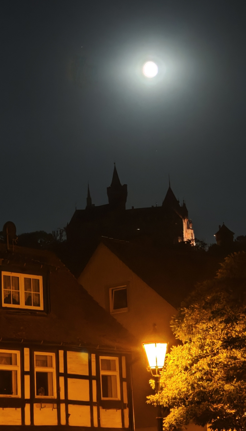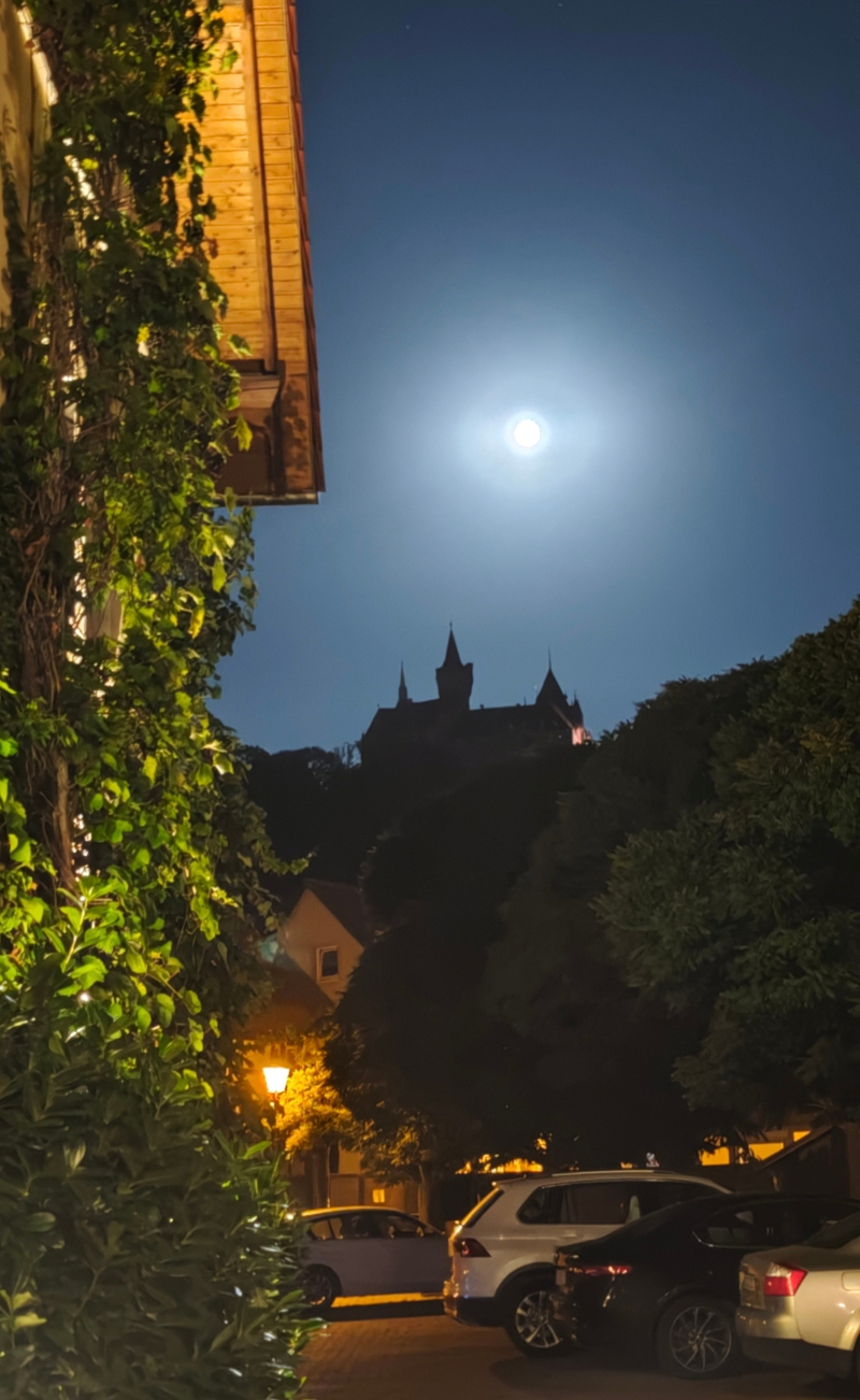 Sah ich das der Mond über dem Schloss Wernigerode stand und dies wunderschön anzusehen war.