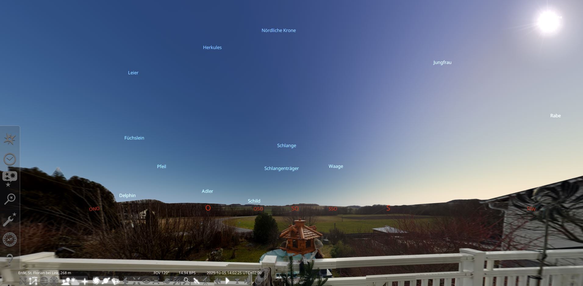Inzwischen steuere ich das Mak mit Stellarium inkl. Alignment (keine SIcht auf Polaris nur NO-SW),